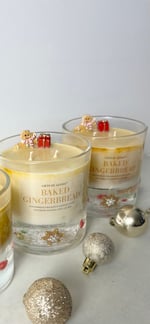 A freshly baked gingerbread aroma opening with top notes of rich, warm & spicy ginger blended with mouthwatering notes of cinnamon, orange, buttery biscuit and a whisper of sweet sugary vanilla.